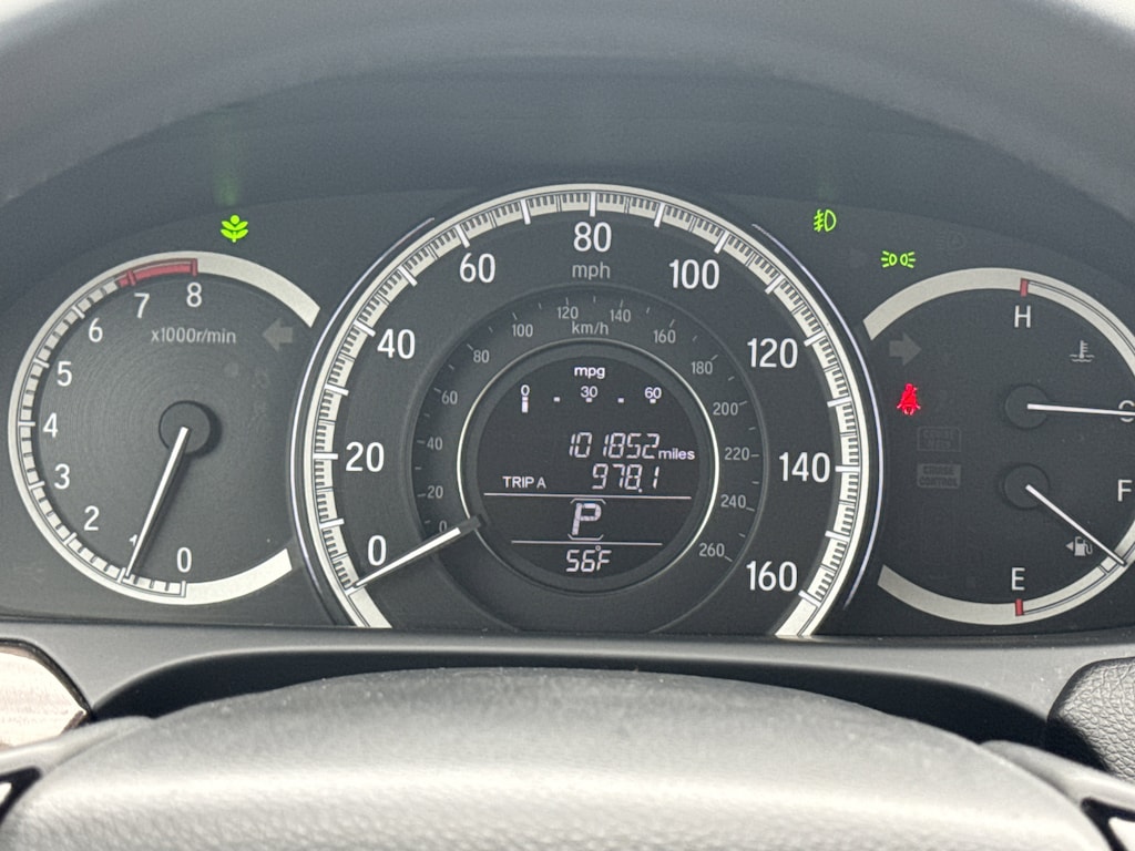 Under the hood, this Accord is powered by a 2.4-liter i-VTEC four-cylinder engine, paired with a continuously variable transmission (CVT) and front-wheel drive. This powertrain delivers an impressive balance of efficiency and responsiveness, with an EPA-estimated 27 city/37 highway mpg.