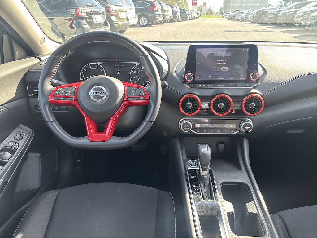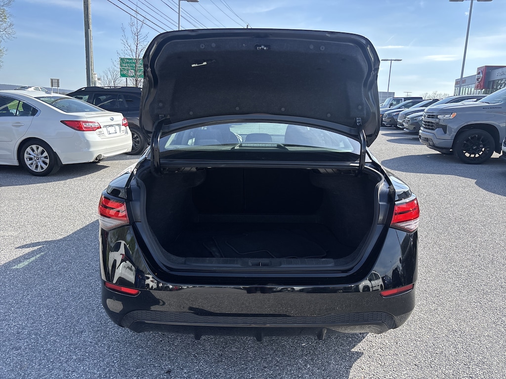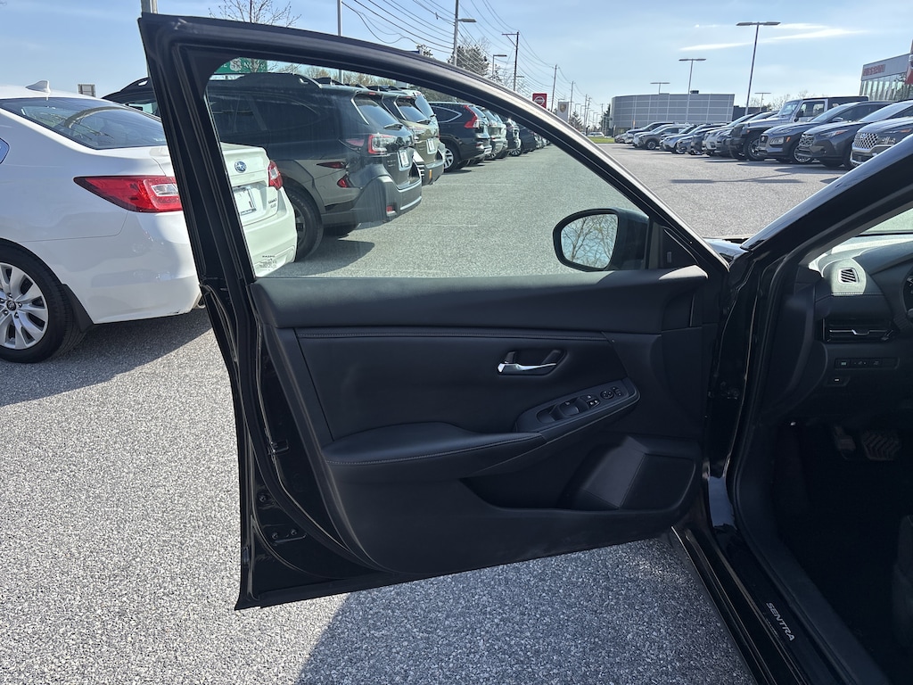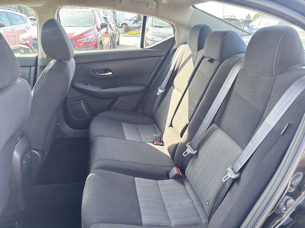 Beyond its impressive performance, the Sentra SV showcases a striking black exterior and a well-appointed interior with upgraded cloth seat trim. Thoughtful touches like the carpeted floor mats, body-colored splash guards, and door sill plates add a refined touch to this modern compact.